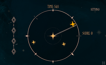 I like the aesthetic and gameplay. Feels like the stars closer to the edge of the circle are way harder to hit. More visual effects could add a lot to the overall atmosphere.